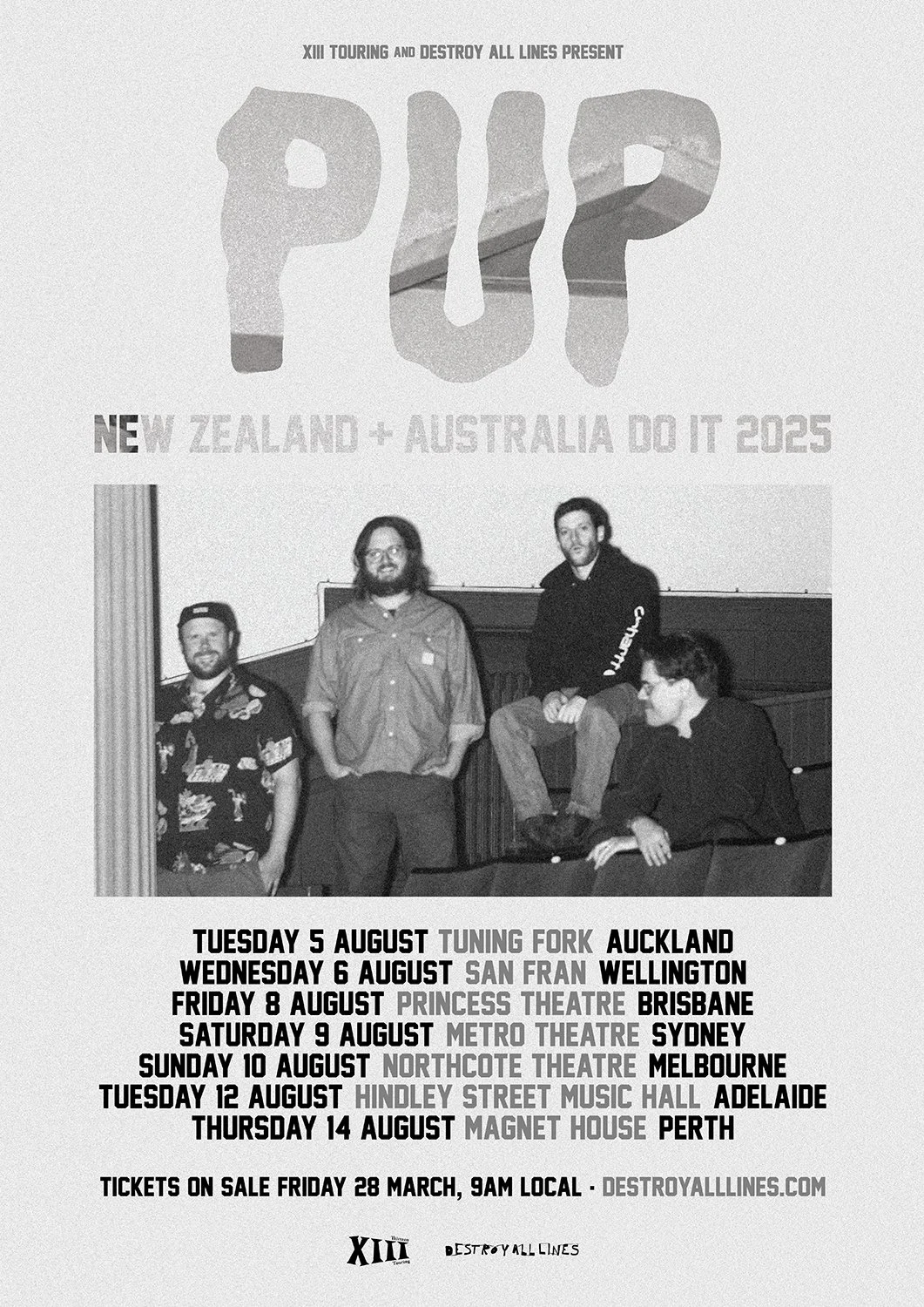 Canadian punk-rock outfit PUP are returning down under for the first time since 2022. Headlining cities in Australia and New Zealand this August, the Toronto-based band will be celebrating the release of their fifth studio album Who Will Look After The Dogs, out 5 May 2025.